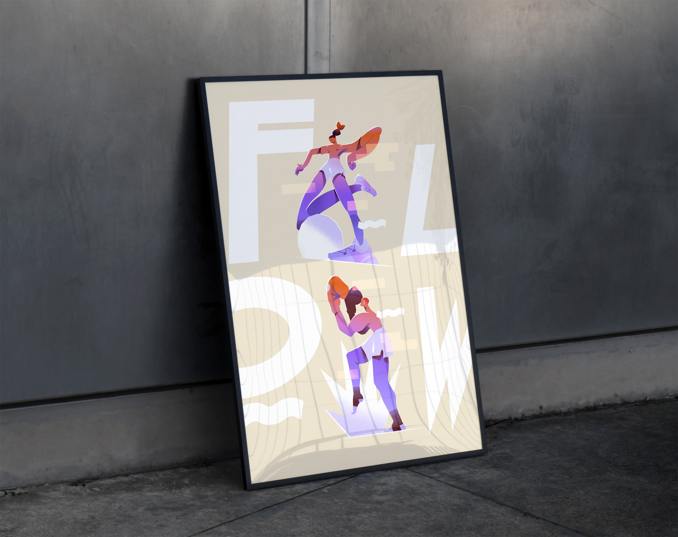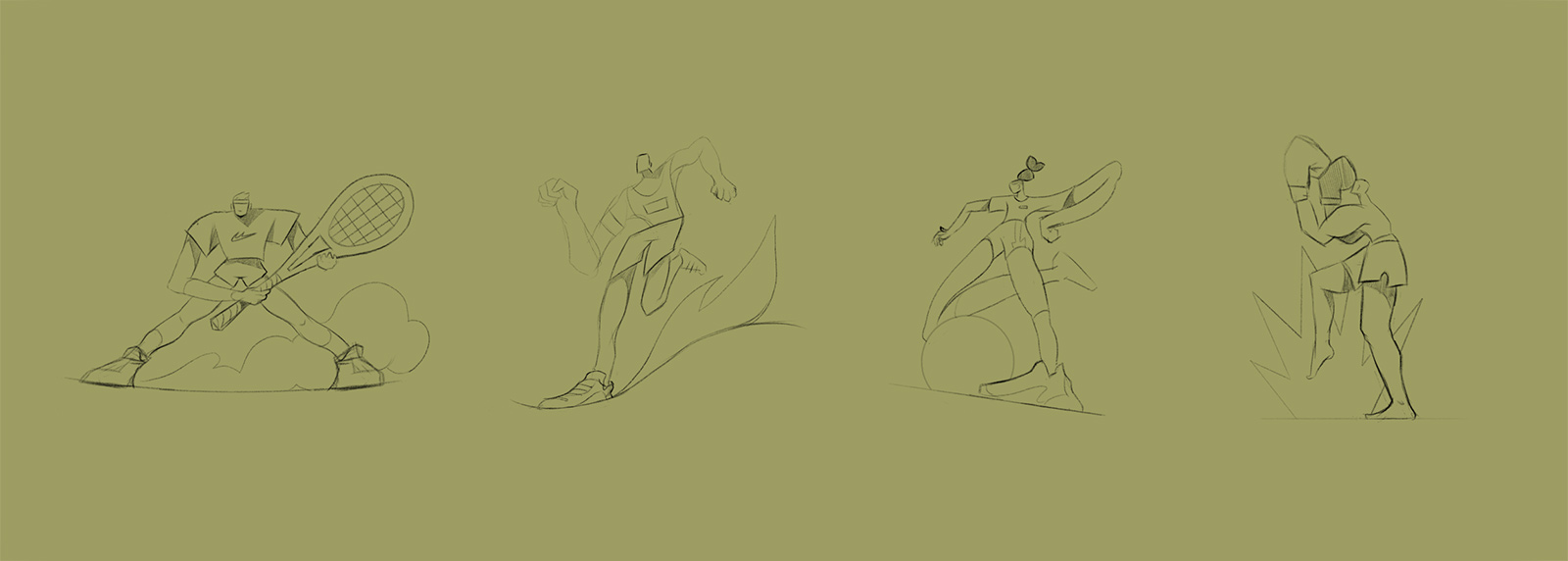 Une serie de personnage illustré autour du flow et la dynamique du mouvement dans le sport.