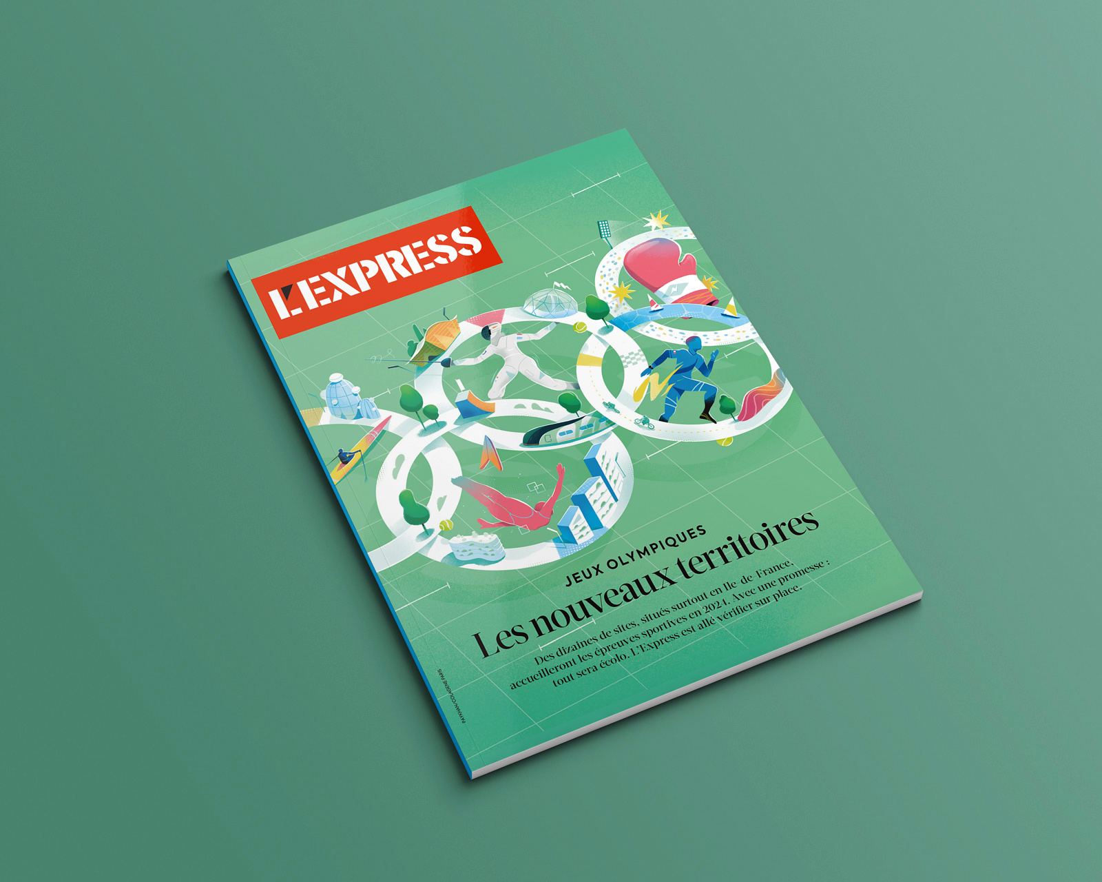 Couverture illustrative crée pour le magazine l’Express en juillet 2023, avec un dossier spécial sur les Jeux Olympiques 2024 : “Comment ils vont changer le France”. Cette édition s'est intéressée à l'impact environnemental et social du projet monumental entrepris par le pays.